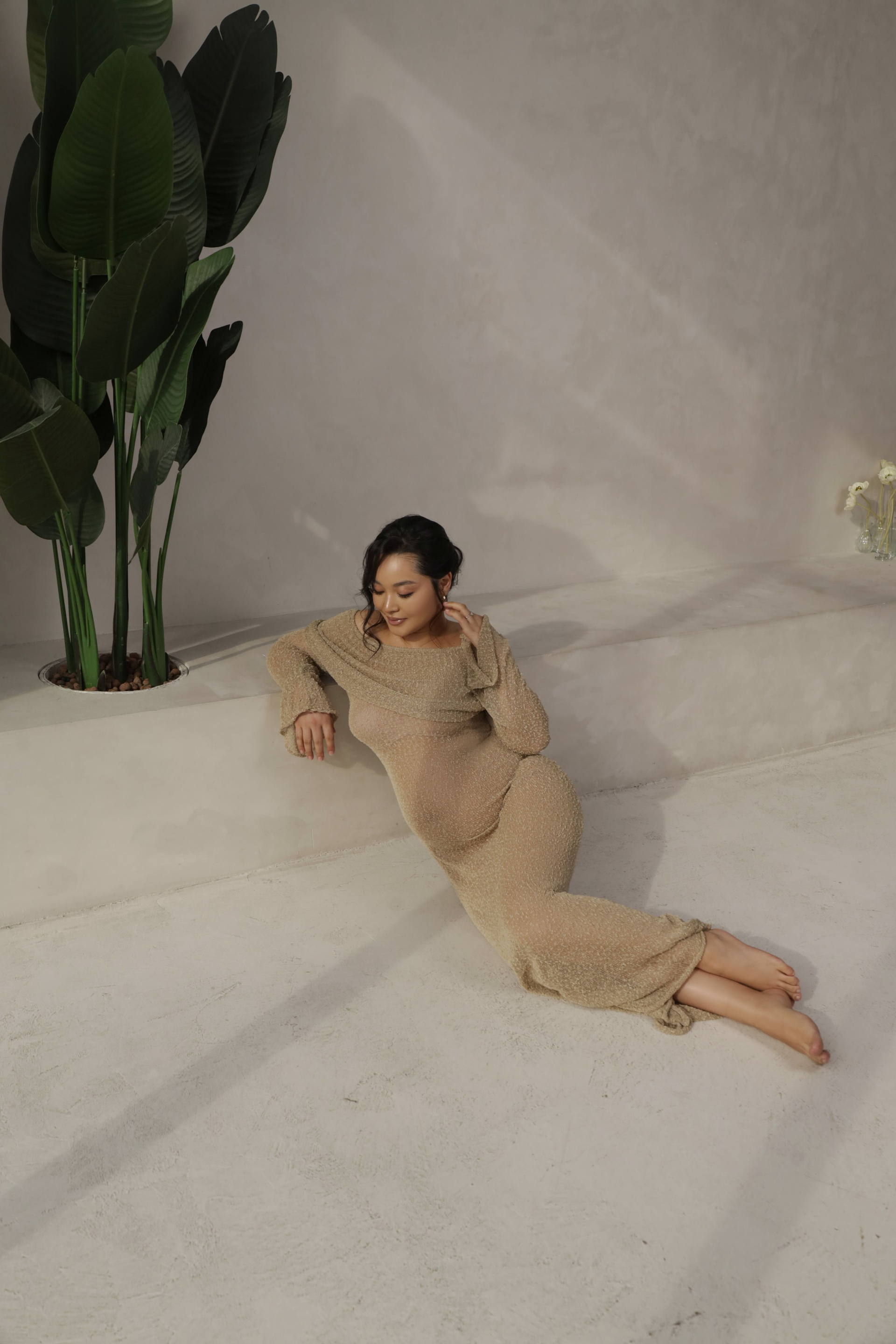 очень нежное уютное бежевое платье в пол, немного просвечивает,размер универсальный