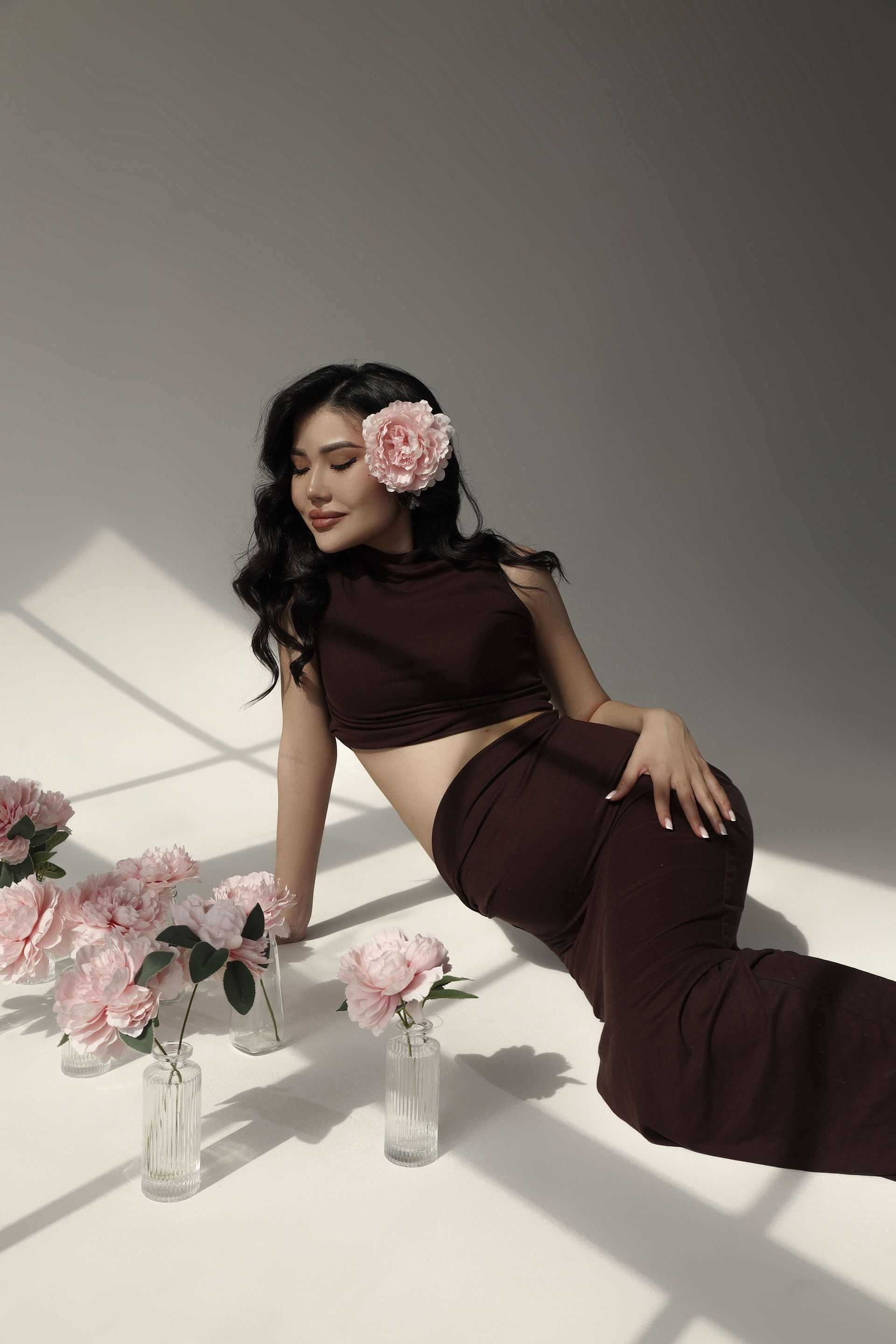 нереальная шоколадная двойка, топ и юбка макси. Размер S\M