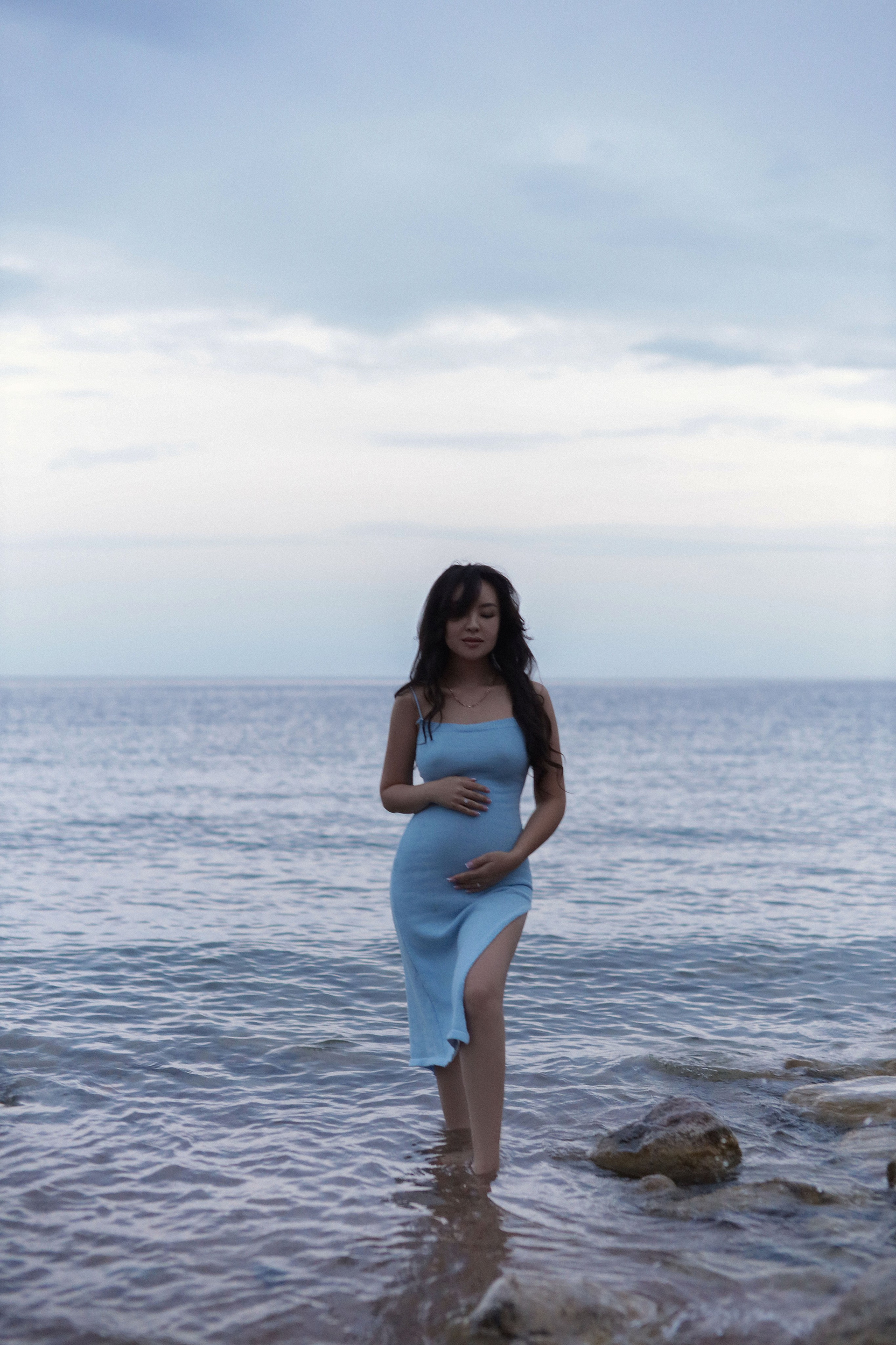 красивое вязанное платье голубого цвета,размер S\M. спинка регулируется,длина ниже колена,имеется разрез на ножке