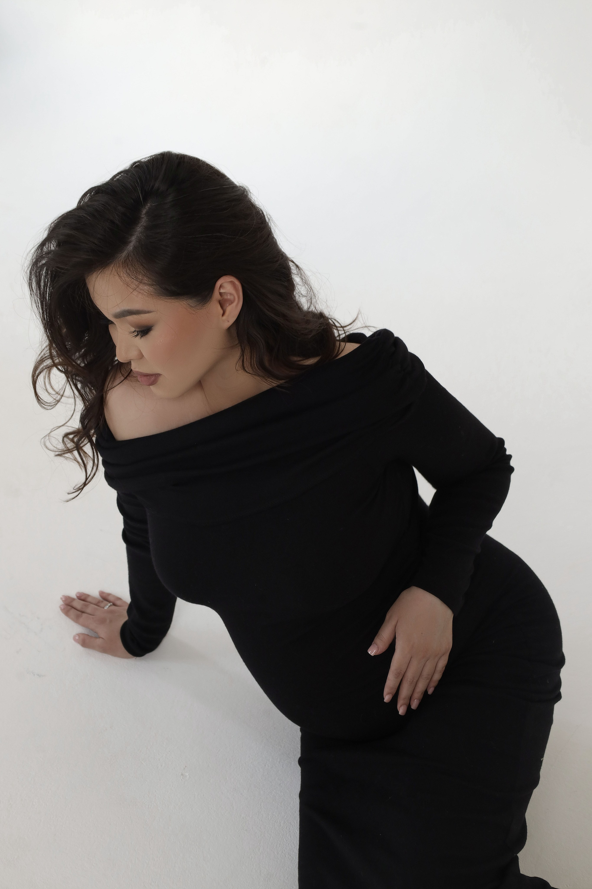 черное базовое платье с опущенными плечами,трикотаж,так же имеется в оттенке пудра.Размер универсальный